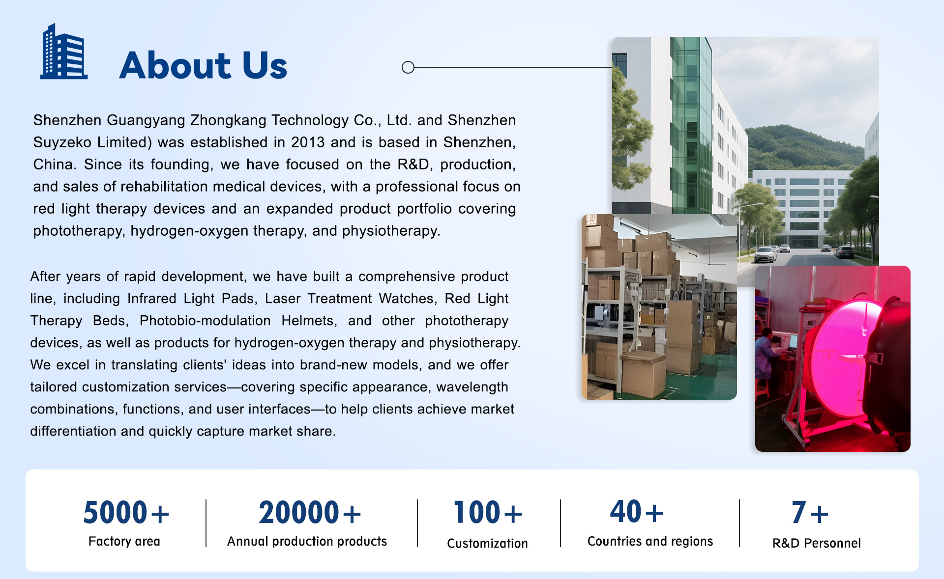 ผลิตภัณฑ์หลัก:เตียงบำบัดแสงสีแดงหมวกกันน็อคอินฟราเรดแผ่นทำความร้อน LED อินฟราเรดนาฬิกาเลเซอร์ข้อมืออุปกรณ์บำบัดคลื่นกระแทก